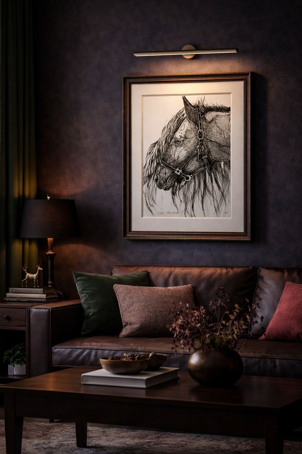 Tento jedinečný portrét zachycuje ušlechtilého koně v čistých liniích a přesných tazích. Díky použití lineru na kvalitním papíře vynikají jemné detaily a kontury, které dávají obrazu nadčasový vzhled.