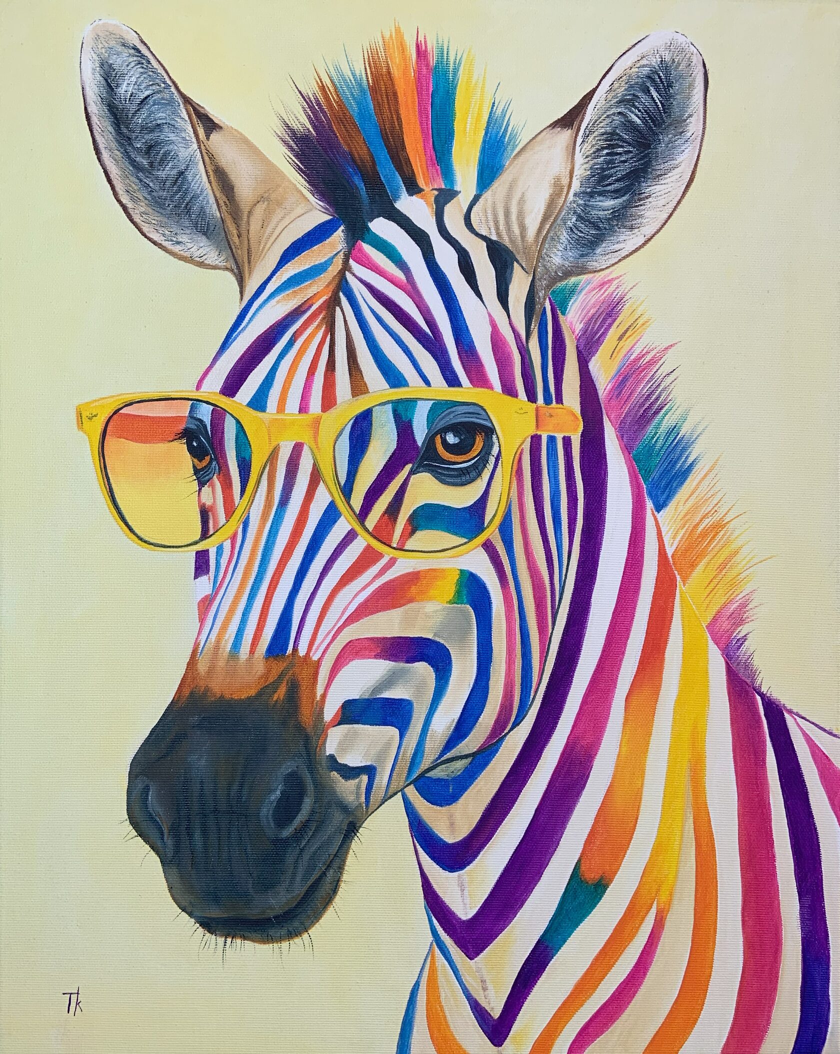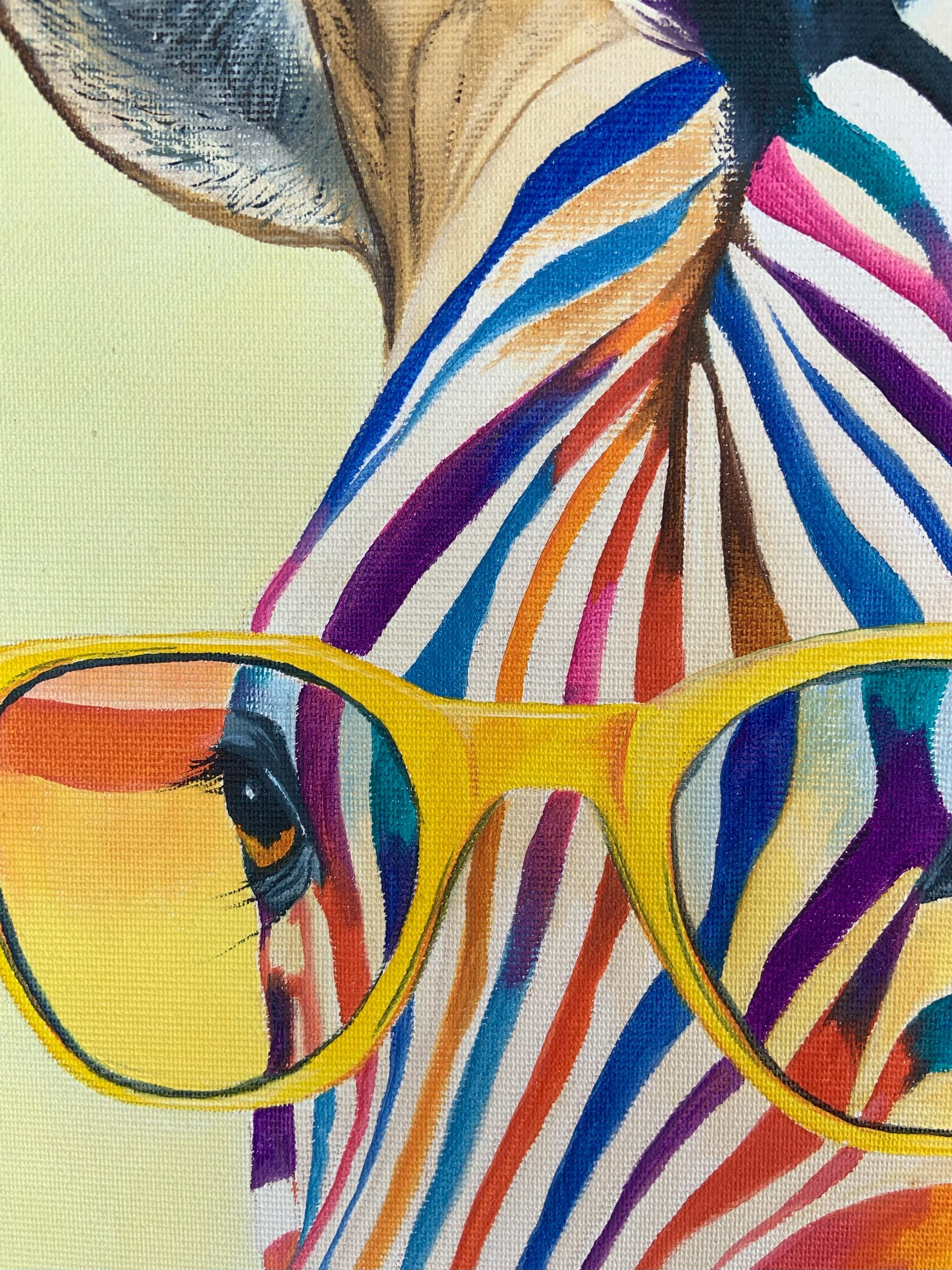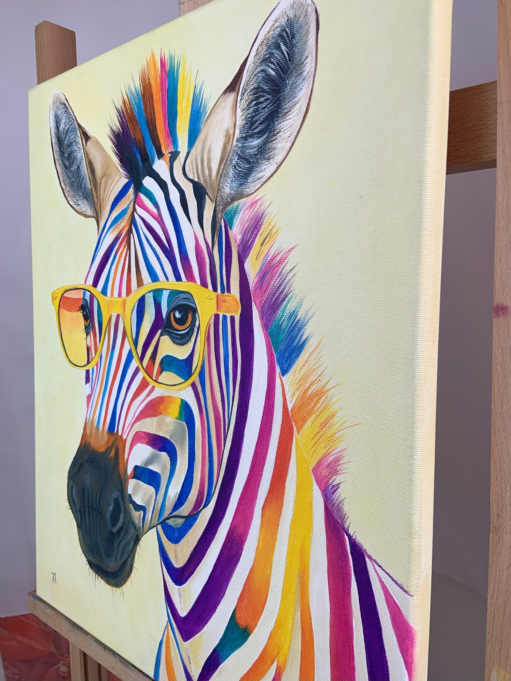 Zářivými olejovými tahy jsem vdechla tomuto zebrovi život v hravém záplavě barev a realismu. Jasné sklo dodává obrazu pop-artový nádech a spojuje zábavu s výtvarným uměním. Mým cílem bylo zachytit sebevědomí a radost a nabít jakýkoli prostor odvážným a povznášejícím duchem, který oslavuje individualitu a rozmarnost. Toto dílo je živou oslavou jedinečnosti – ideální pro rozjasnění vašeho domova šarmem a barvami.