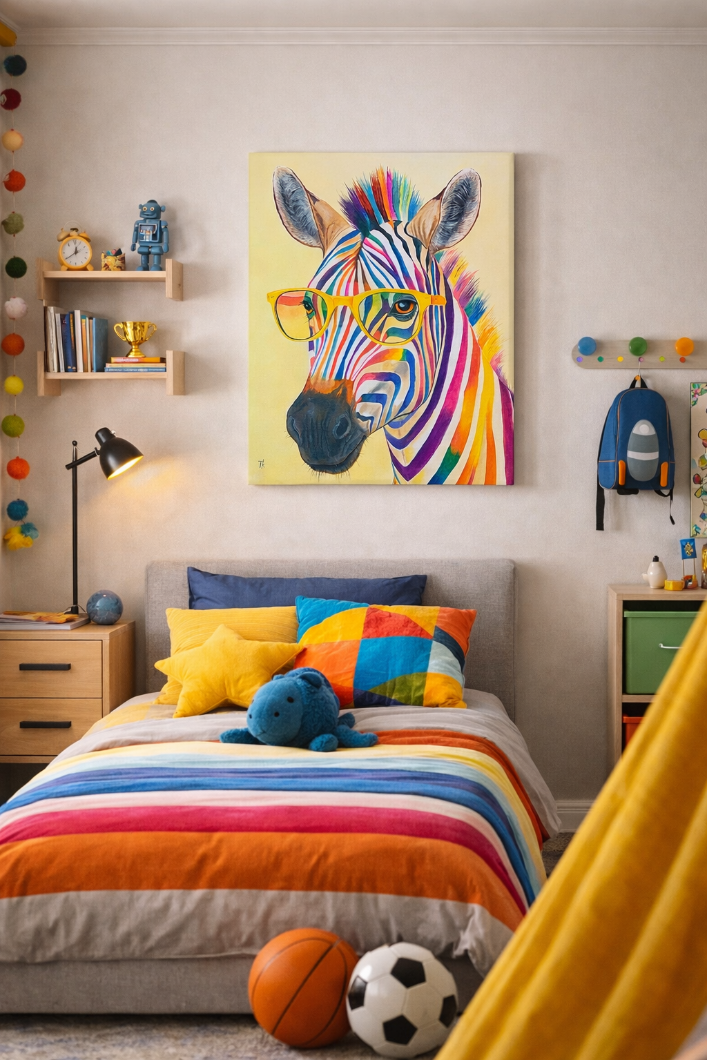 Zářivými olejovými tahy jsem vdechla tomuto zebrovi život v hravém záplavě barev a realismu. Jasné sklo dodává obrazu pop-artový nádech a spojuje zábavu s výtvarným uměním. Mým cílem bylo zachytit sebevědomí a radost a nabít jakýkoli prostor odvážným a povznášejícím duchem, který oslavuje individualitu a rozmarnost. Toto dílo je živou oslavou jedinečnosti – ideální pro rozjasnění vašeho domova šarmem a barvami.